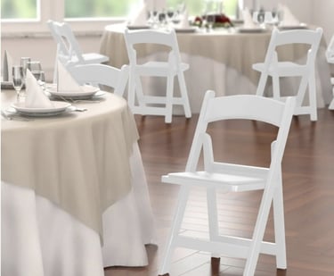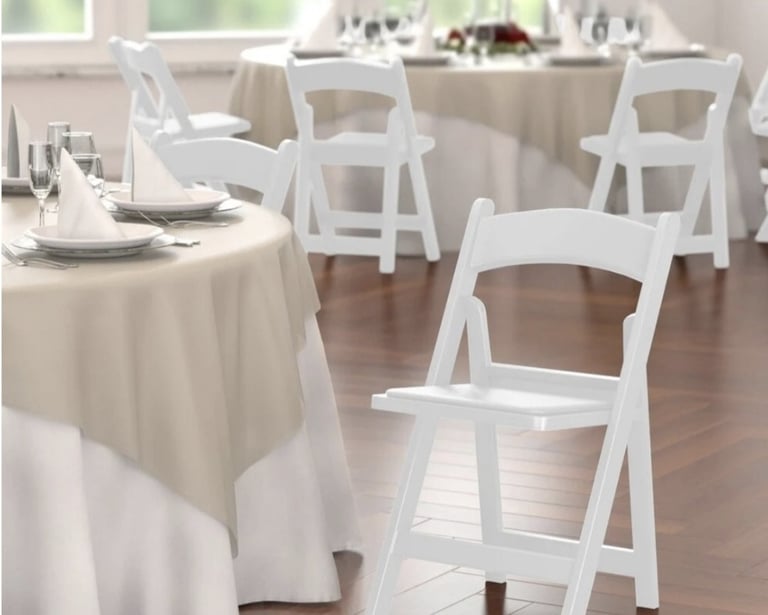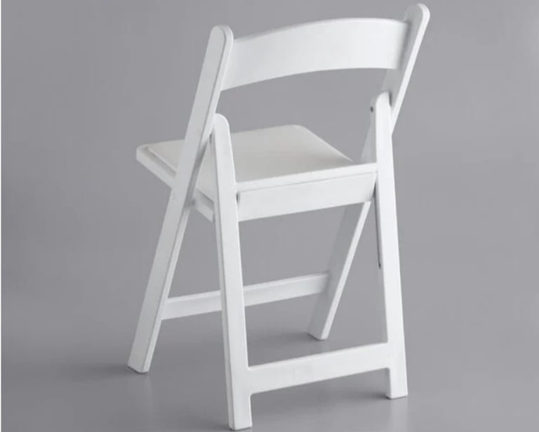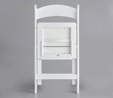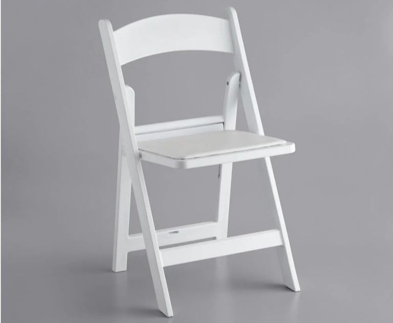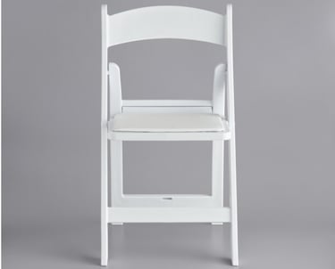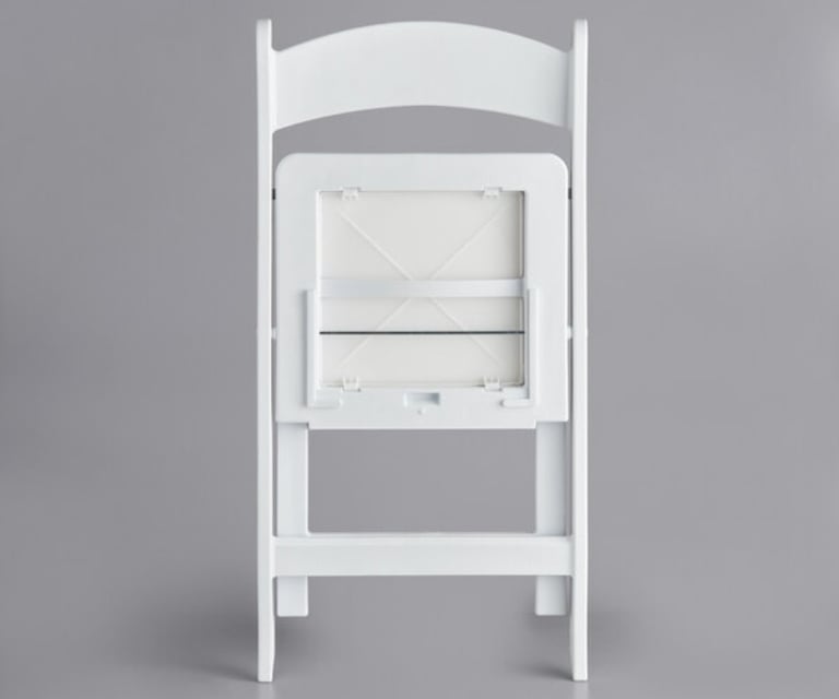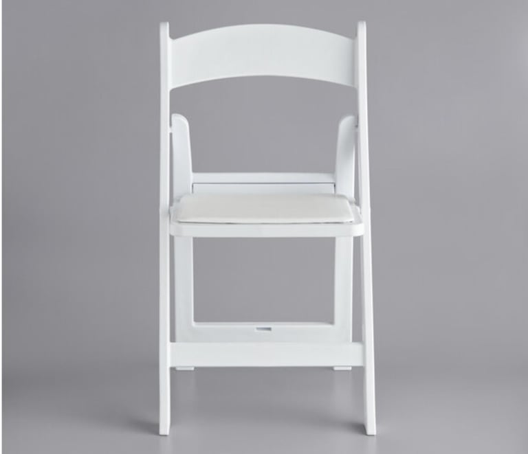 Give your guests comfortable and convenient seating at your events with this white resin folding chair with vinyl seat. This model's white resin finish adds style and class to any backyard barbeque, formal banquet, or wedding. Guests will feel comfortable for hours, thanks to the chair's vinyl padded seat. Plus, its durable polypropylene design ensures it can stand up to both indoor and outdoor use for added versatility, making it ideal for your occasion. The static weight capacity of these chairs are 500 pounds!